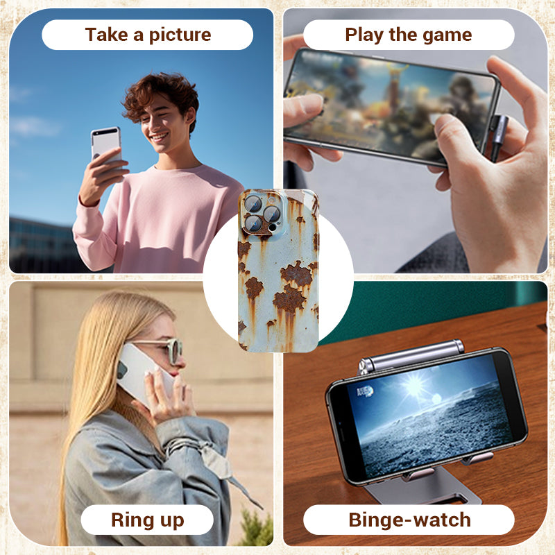 Αυτή η θήκη για κινητό τηλέφωνο χρησιμοποιεί πραγματικό εφέ σκουριάς, προσομοιώνοντας την υφή του διαβρωμένου μετάλλου, προσθέτοντας βιομηχανικό ρετρό στυλ στο κινητό σας. Ο καλλιτεχνικός σχεδιασμός της επιφάνειας δημιουργεί οπτικό βάθος, διατηρώντας παράλληλα την απαλή αίσθηση στην αφή.